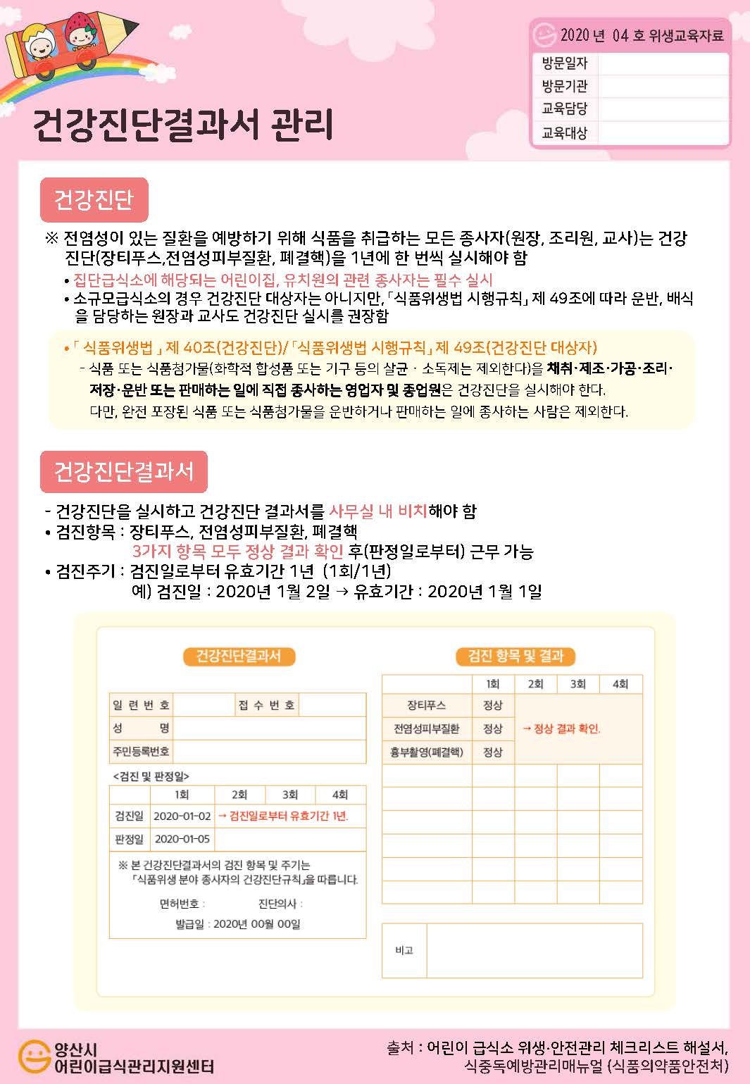 [조리원] 2020년 04호 위생교육자료<건강진단결과서관리>