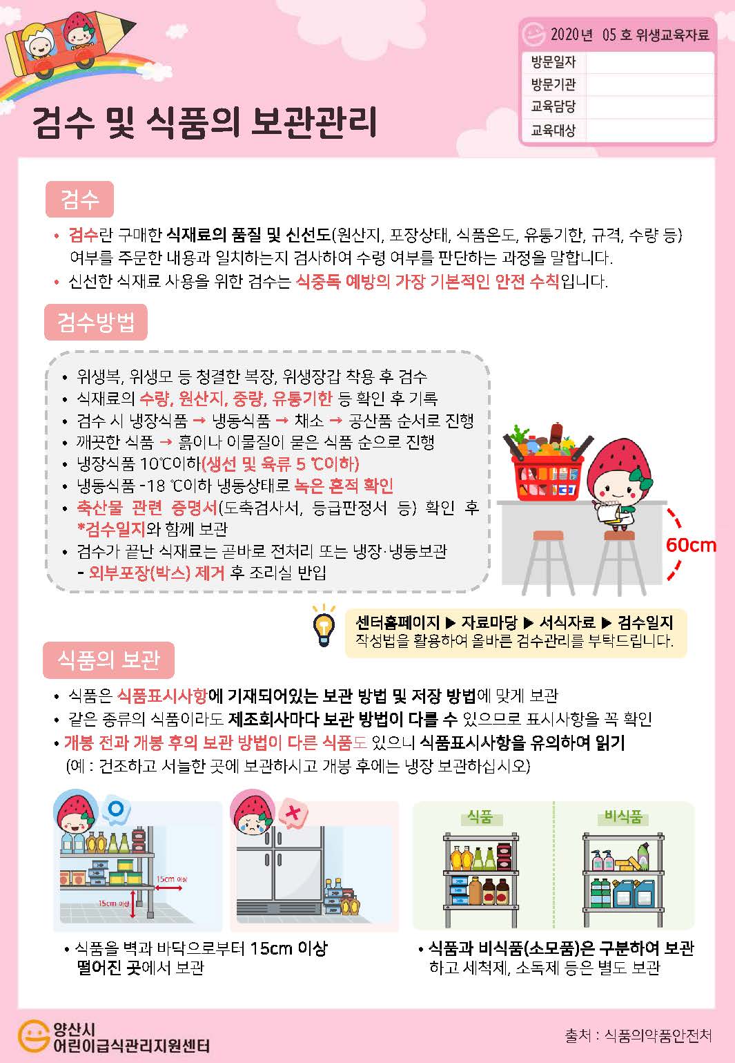 이번 05호 위생교육자료 주제는 <검수및식품보관>입니다.