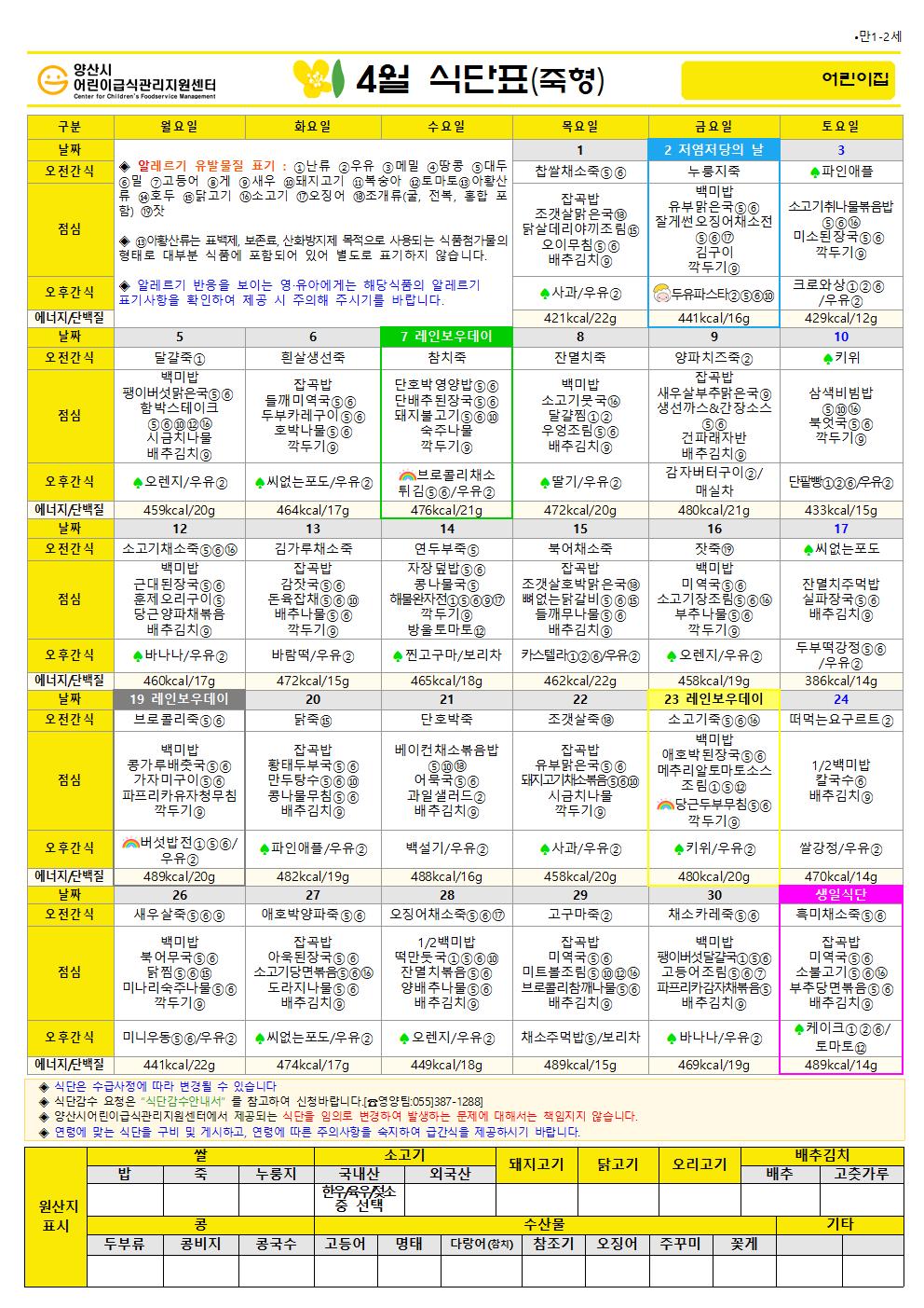 4월 식단(만1-2세 오전죽형)-6일형
