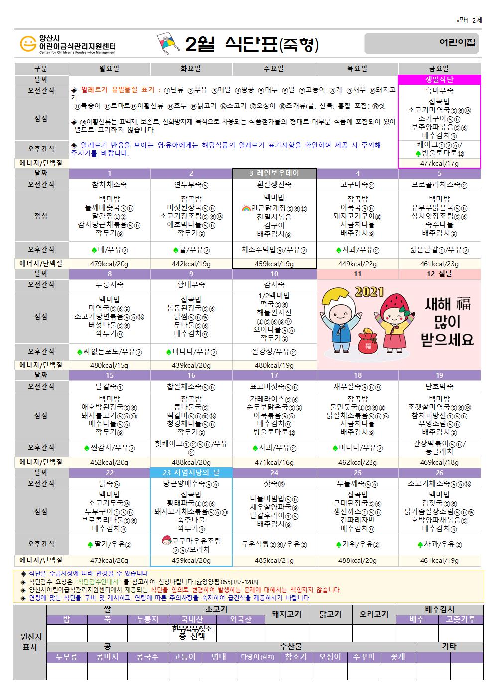 2월 식단(만1-2세 오전죽형)-5일형