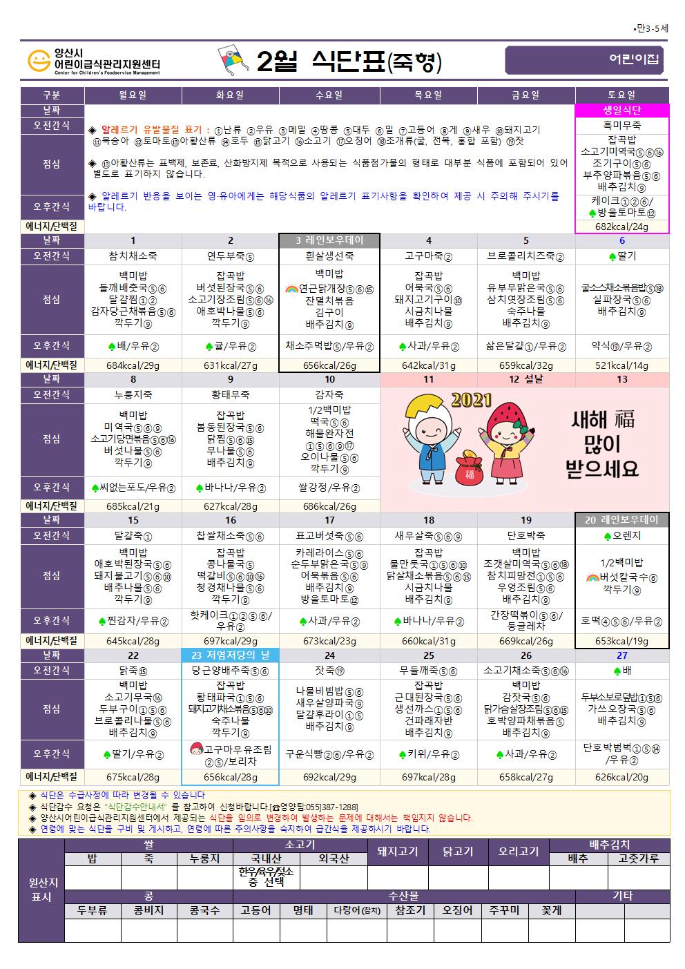 2월 식단(만3-5세 오전죽형)-6일형