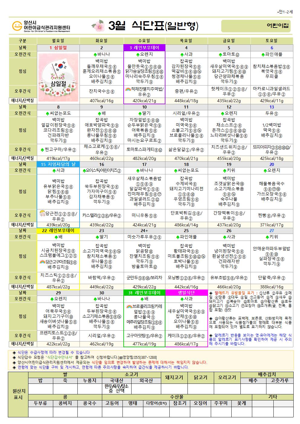 3월 식단(만1-2세 일반간식형)-6일형