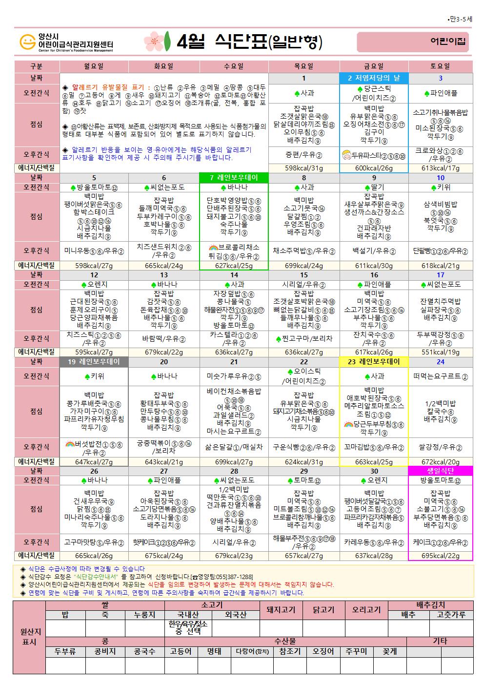4월 식단(만3-5세 일반간식형)-6일형