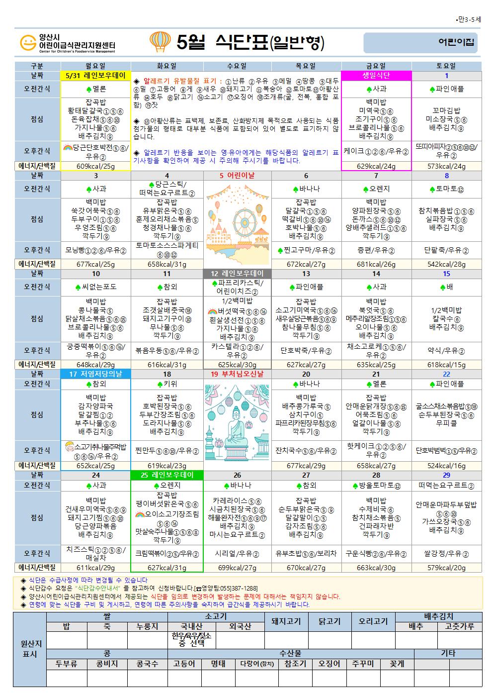 5월 식단(만3-5세 일반간식형)-6일형