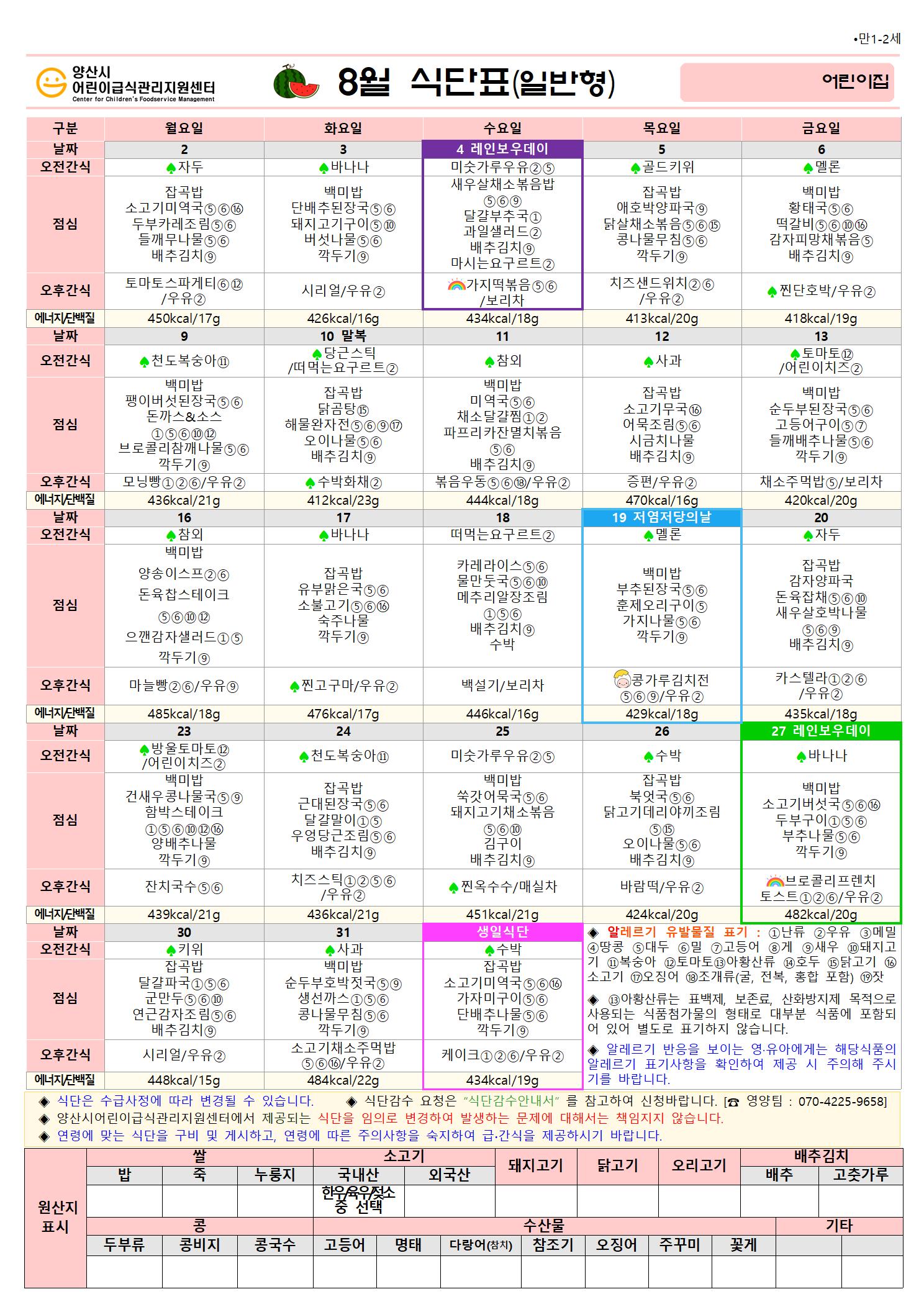 8월 식단(만1-2세 일반간식형)-5일형