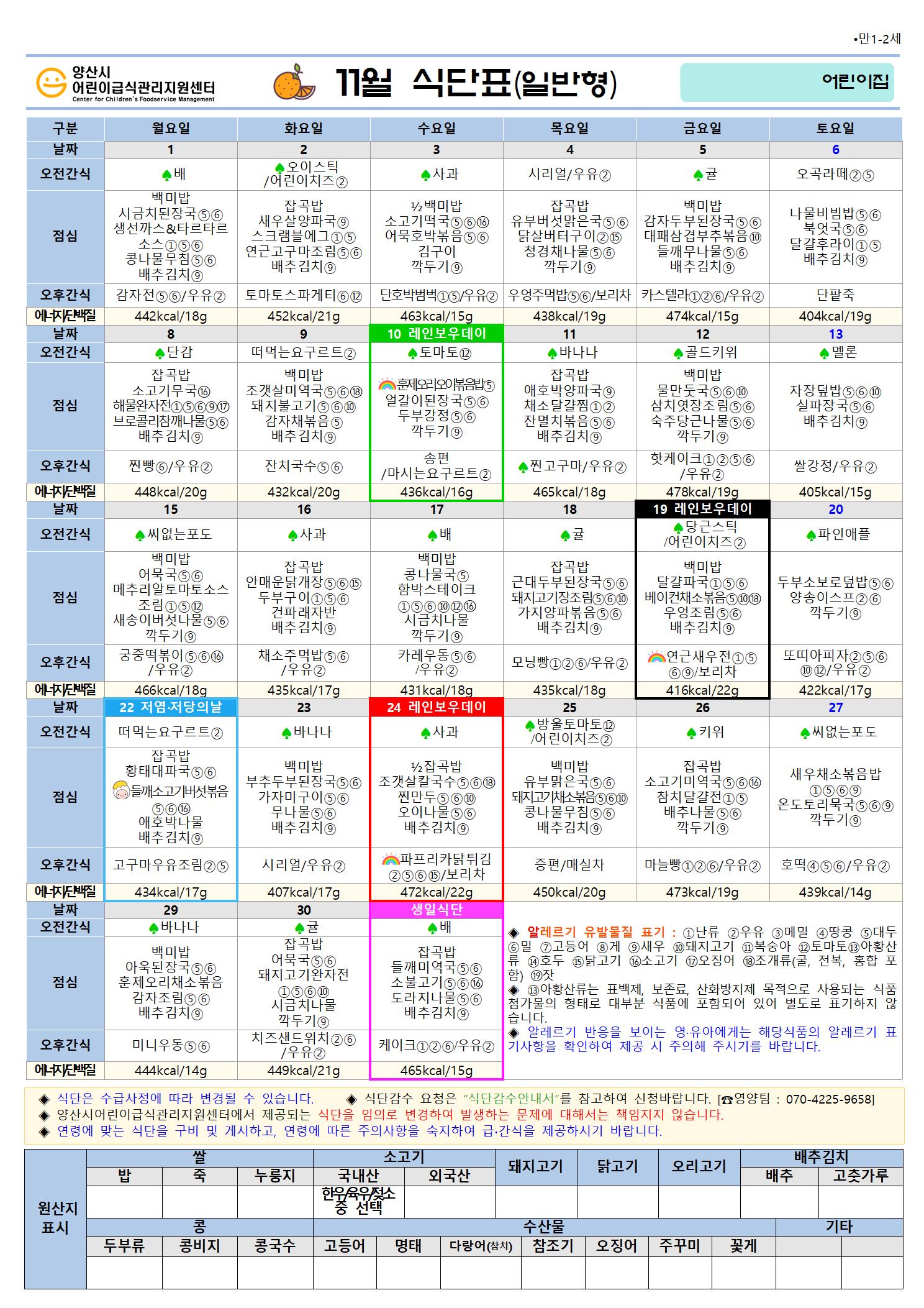 11월 식단(만1-2세 일반간식형)-6일형