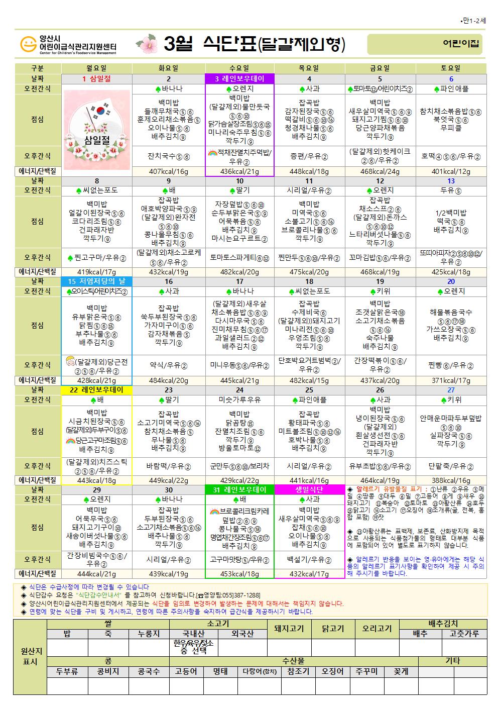 3월 식단(만1-2세 달걀제외식단)