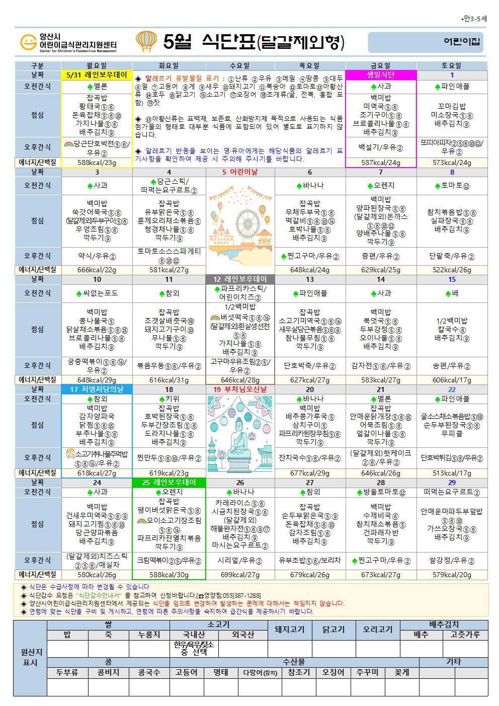 5월 식단(만3-5세 달걀제외식단)