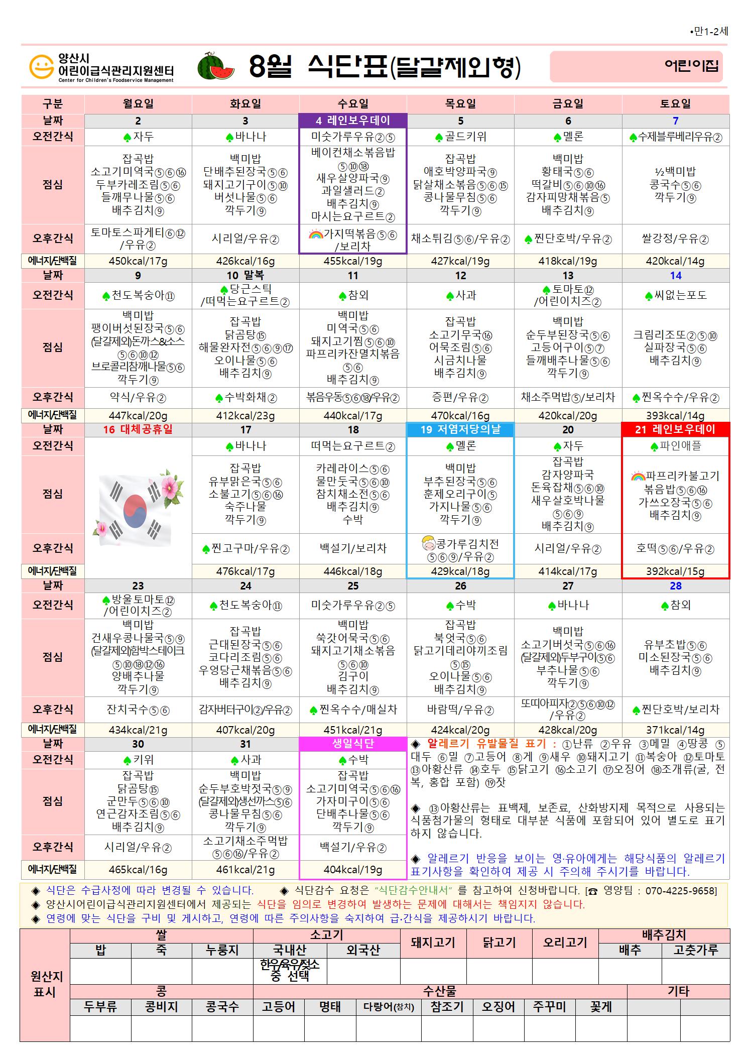 8월 식단(만1-2세 달걀제외형)