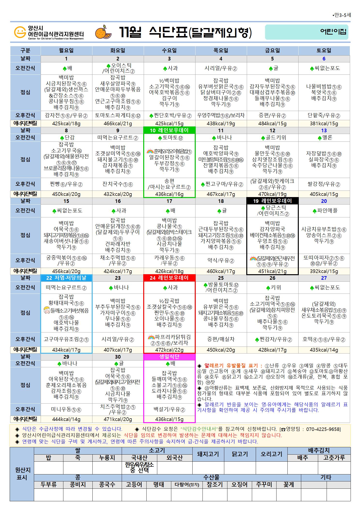 11월 식단(만1-2세 달걀제외형)