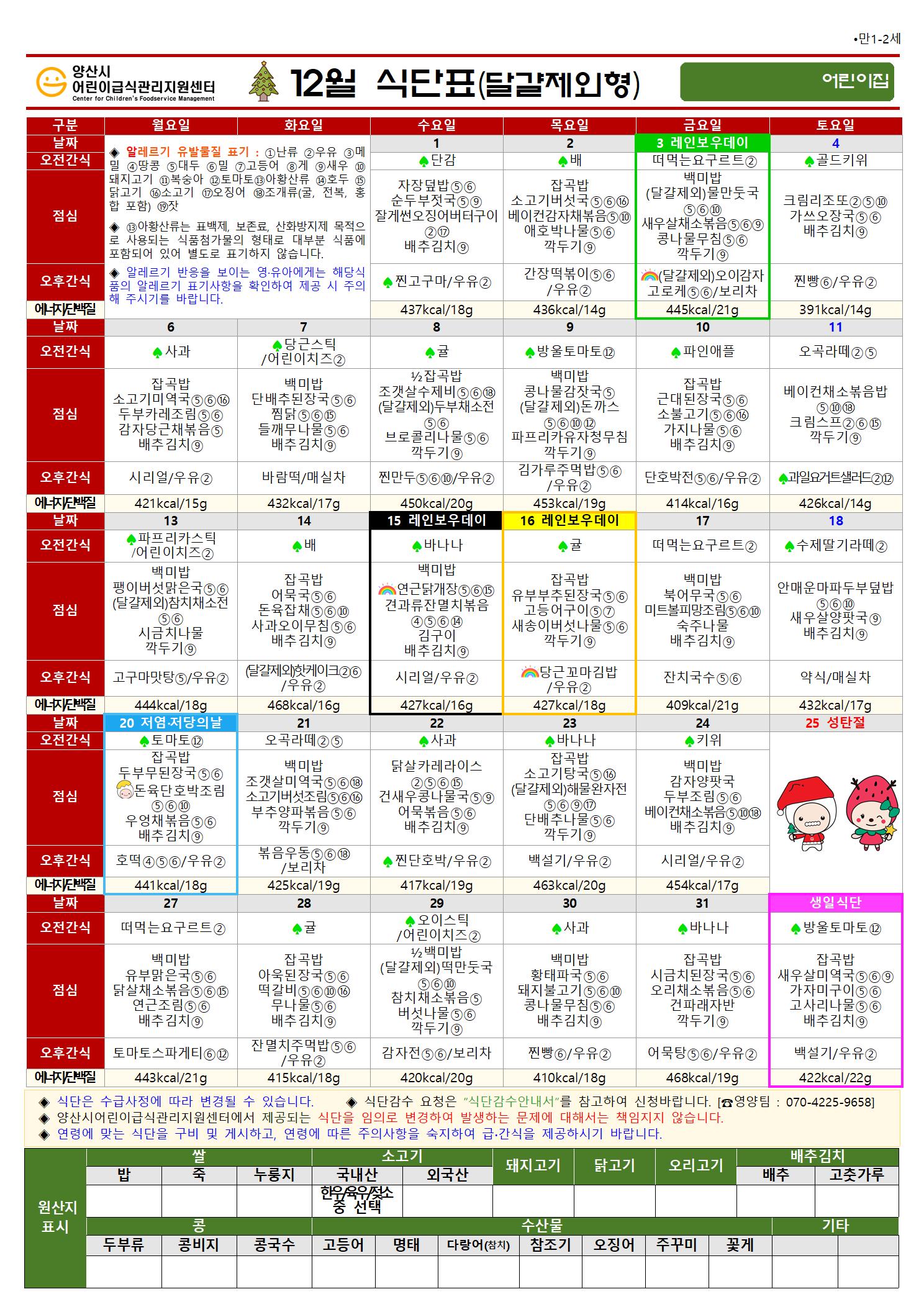 12월 식단(만1-2세 달걀제외형)