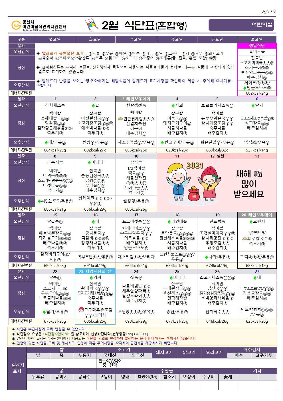 2월 식단(만3-5세 혼합간식형)-6일형
