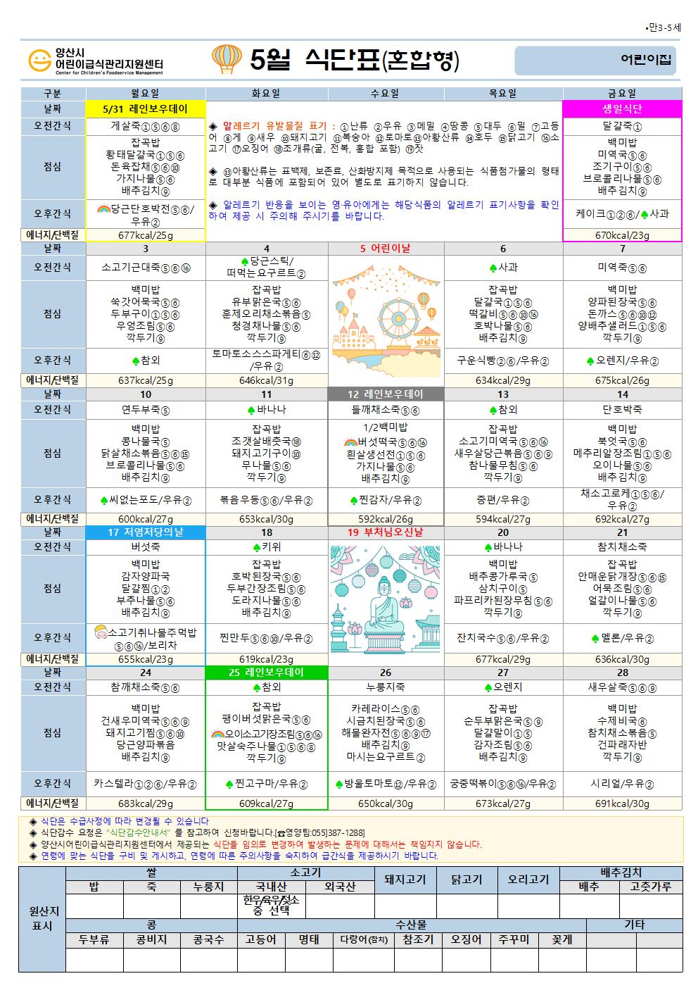 5월 식단(만3-5세 혼합간식형)-5일형
