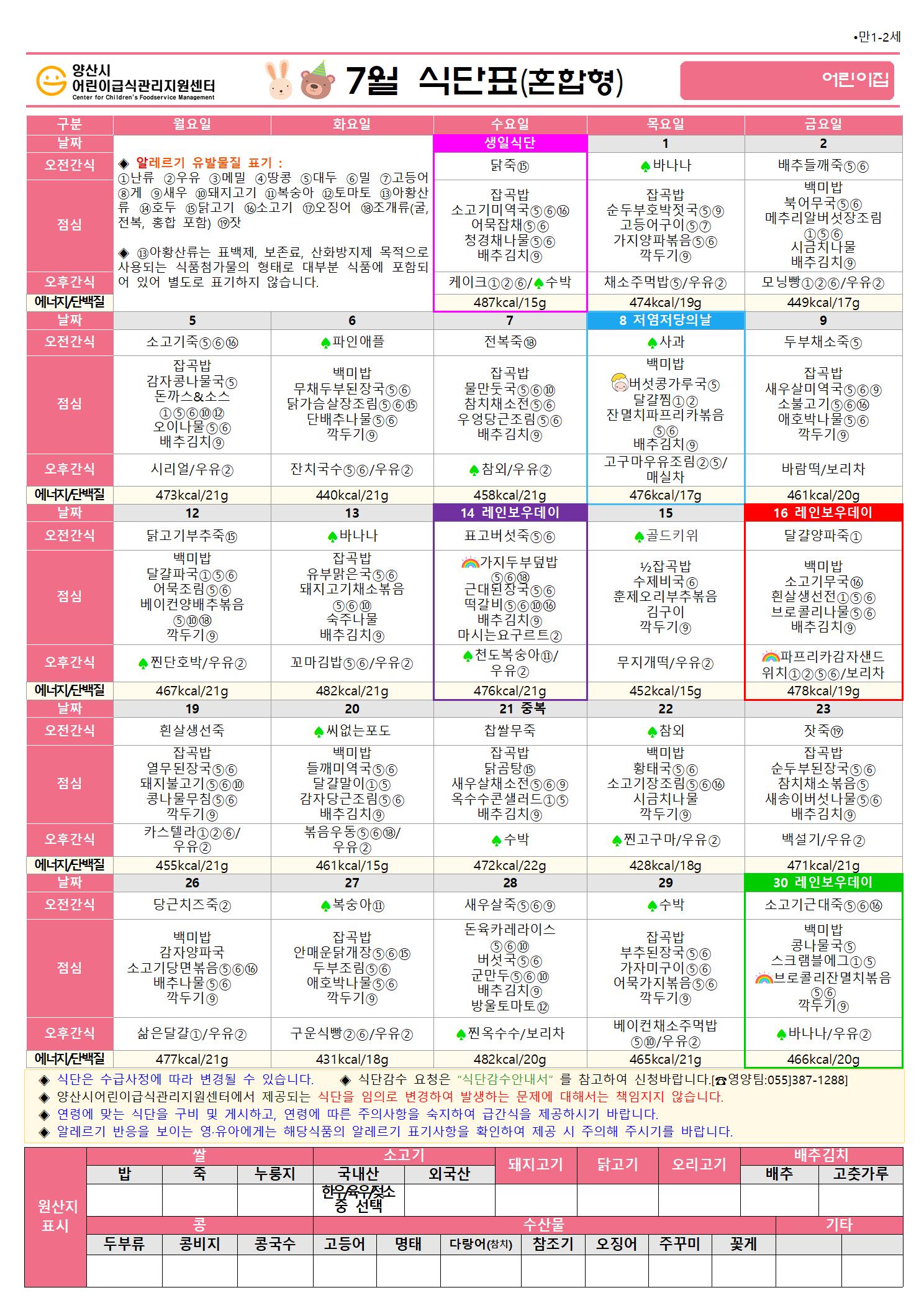 7월 식단(만1-2세 혼합간식형)-5일형