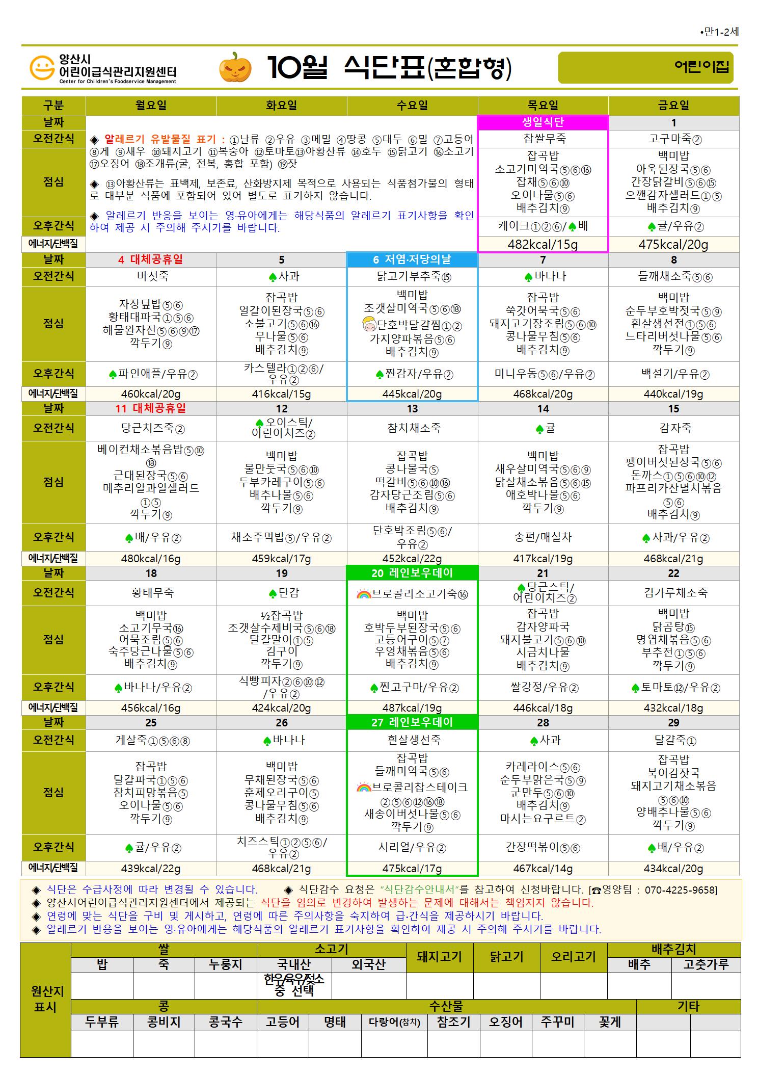 10월 식단만1-2세 혼합간식형-5일형.hwp