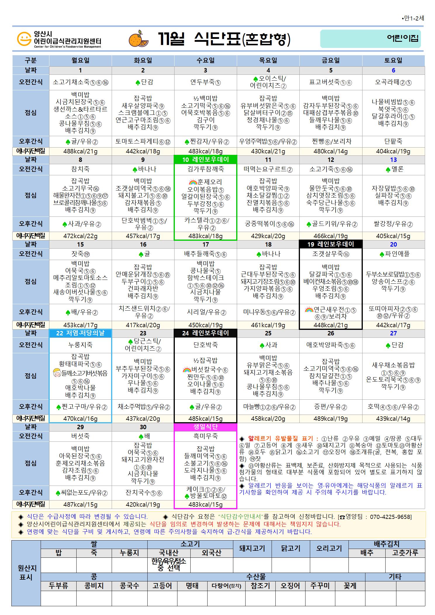 11월 식단(만1-2세 혼합간식형)-6일형